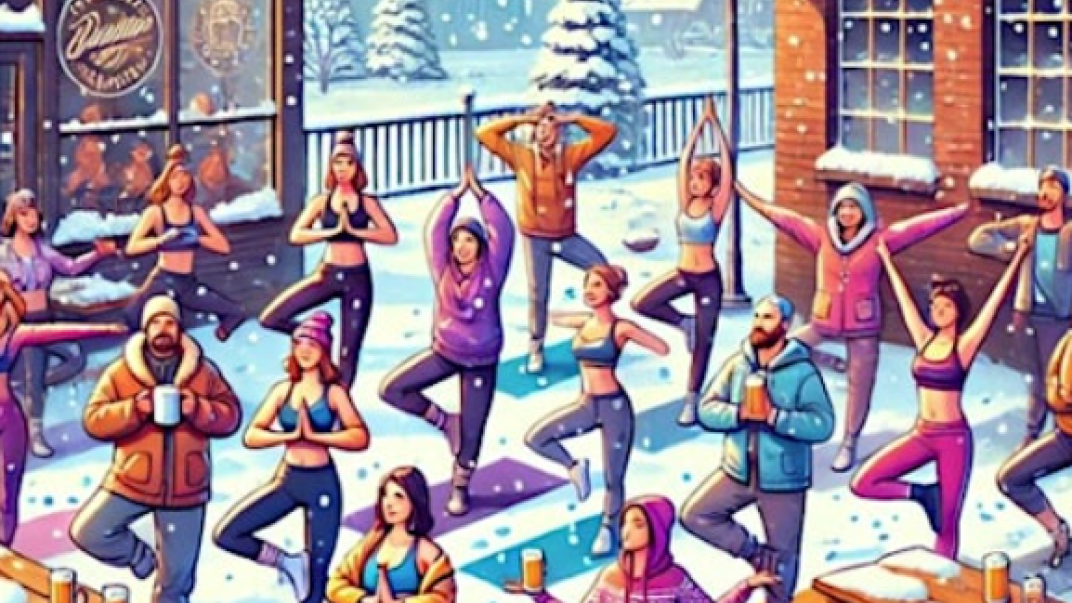 Que ce soit pour la zénitude ou tout simplement pour la bière, venez vous amuser et vous imprégner de l’ambiance de l’hiver. Après le yoga, sirotez un bon café ou une bière froide pour vous dégeler les orteils et passer du bon temps. Enfilez votre tenue d’hiver et participez à une activité qui vous réchauffera tant l’intérieur que l’extérieur... peut-être après quelques postures!