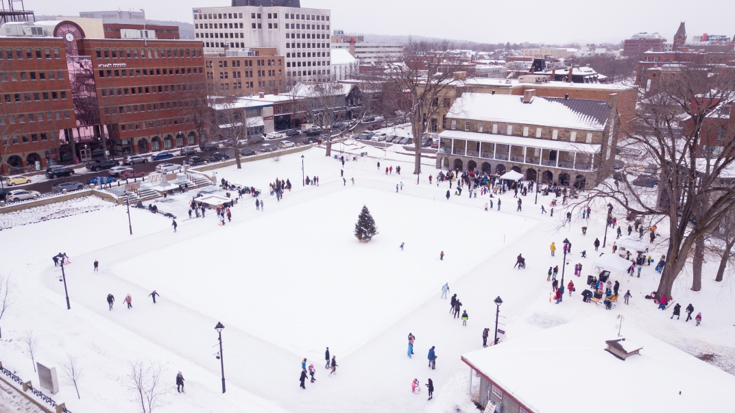Regardez les enfants (et les enfants dans l’âme) glisser, tournoyer et rire sur la glace, et réchauffez-vous ensuite près d’un bon feu en vous imprégnant de l’ambiance animée de l’hiver au cœur de la ville.